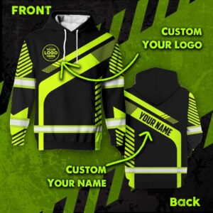 Hi Vis Hoodie Reflective Tapes Uniform Green Neon Black 2 Custom