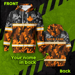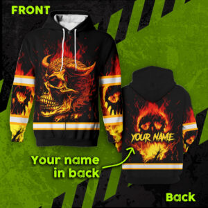 Hi Vis Zip Hoodie Reflective Orange Neon Skull Fire Custom Name Safety Workwear For Workers, Runners, Cyclists, Patriotic