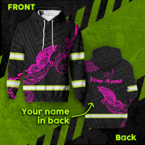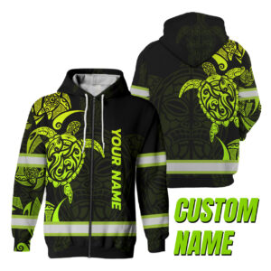 Hi Vis Zip Hoodie Reflective Green Neon Skull 3 Custom Name Safety Workwear For Workers, Runners, Cyclists, Patriotic