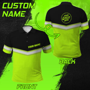 Hi Vis Polo Shirt Uniform Reflective Black Green Custom Name And Logo Safety Workwear