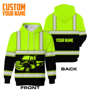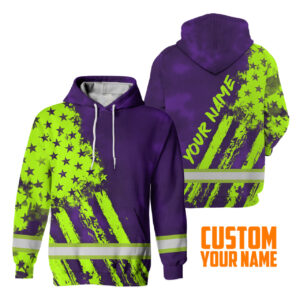 Hi Vis Hoodie Reflective US Flag Black Green Custom Name Safety Workwear