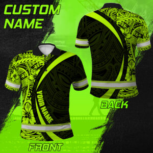 Hi Vis Polo Shirt Tapes Hawaiian Polynesian Tribal Custom Name Safety Workwear