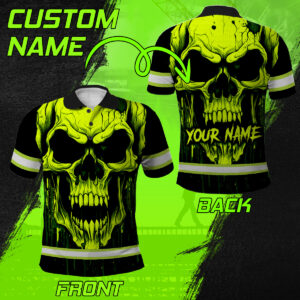 Hi Vis Polo Shirts Reflective Lime Neon Skull Custom Name Safety Workwear For Workers, Runners, Cyclists, Patriotic